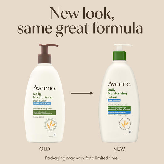 Sheer Hydration Fragrance-Free Daily Moisturizing Lotion with Prebiotic Oat for Dry Skin, Lightweight, Fast-Absorbing Body Moisturizer Nourishes Skin with 48-Hour Moisture, 18 Fl. Oz